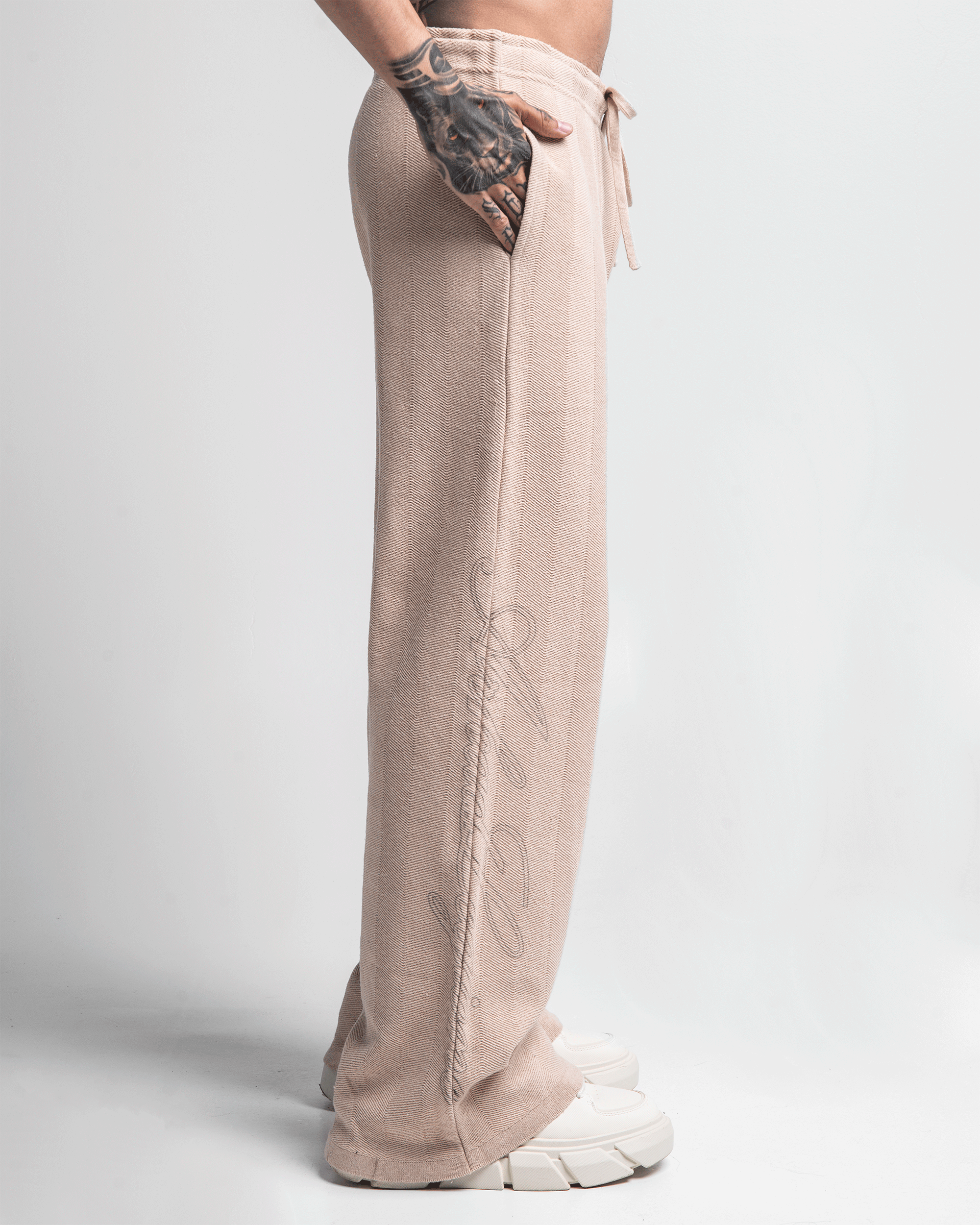 Cuenta con un cordón ajustable en la pretina e incluye bolsillos laterales. Lleva estampados en la parte frontal y en la pierna izquierda distintivos de la colección.
