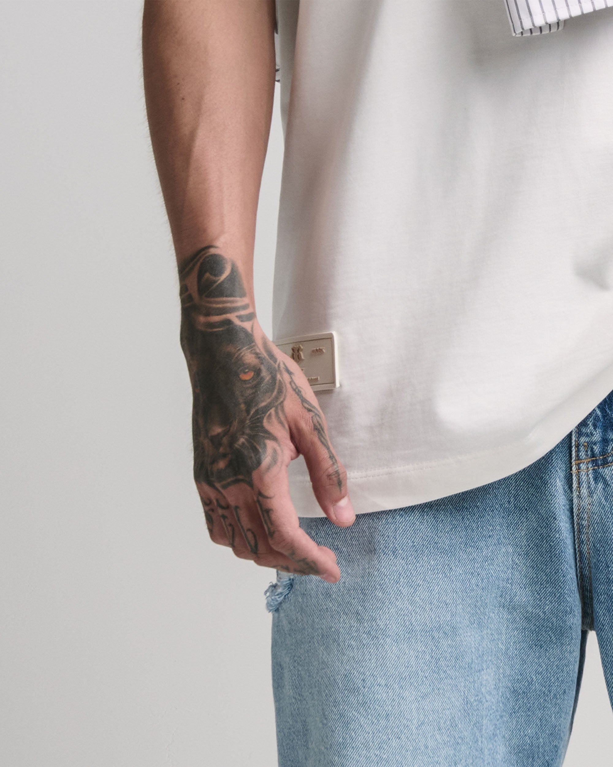 Esta camiseta de fit oversize está confeccionada en algodón 100% de alto gramaje en color beige con gráficos estampados en serigrafía con variedad de colores y alta densidad en el frente y la parte posterior. Detalles como el rubber y el banderín de la marca complementan un diseño exclusivo y autentico.
