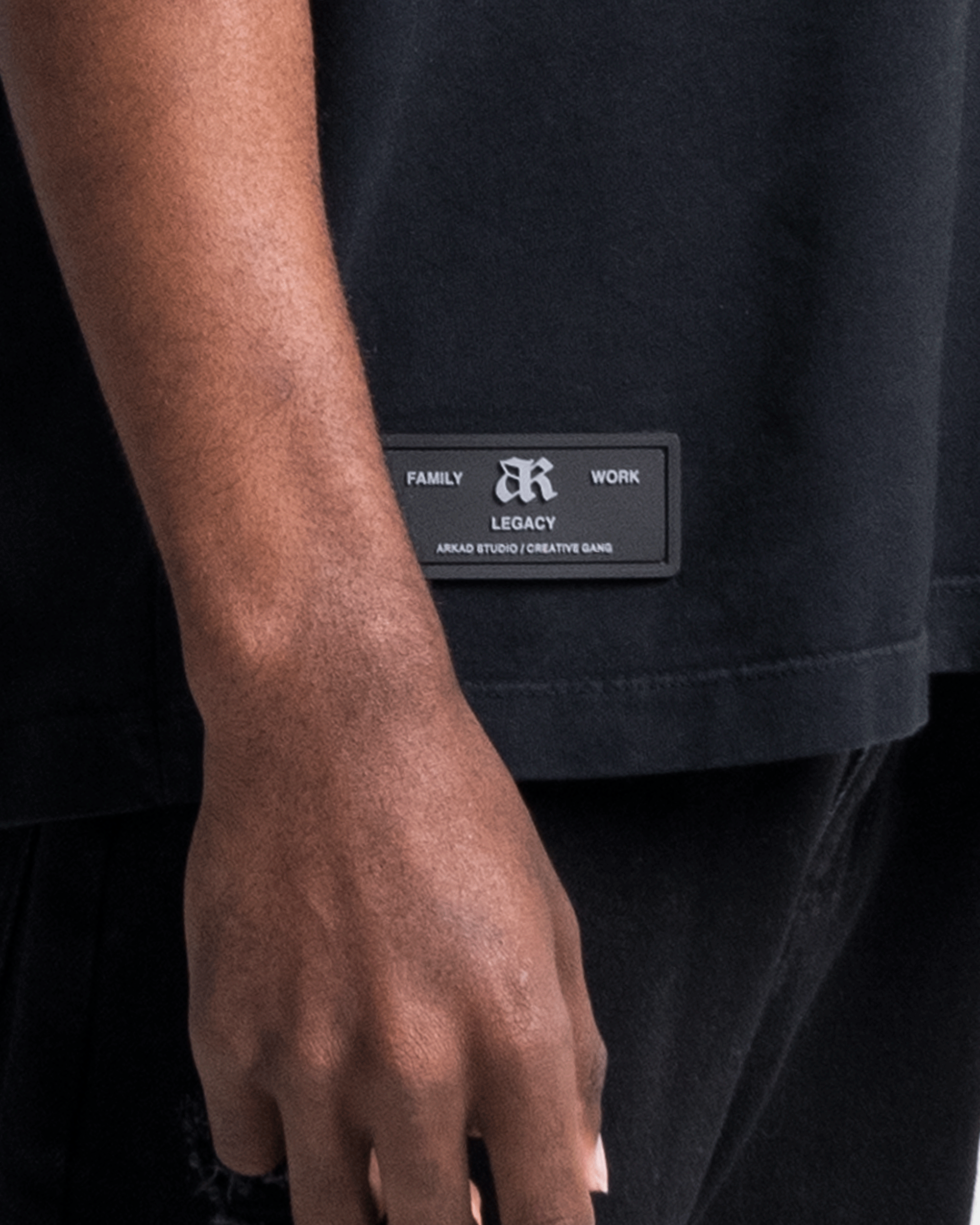 Esta camiseta de fit oversize está confeccionada en algodón de alto gramaje. Su proceso de lavanderia genera un acabado de degradacion del color negro y blanco, aportando un tono único y desgastado. Los diseños estampados en en la parte frontal y posterior aseguran una imagen nítida. Incluye marquilla y banderín de la marca, detalles que reflejan calidad y autenticidad.